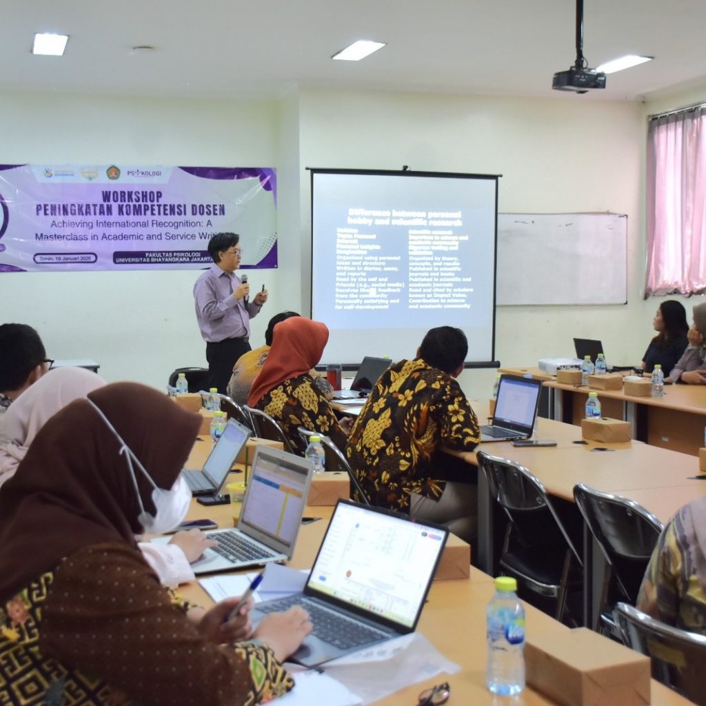 Bekasi – Fakultas Psikologi Universitas Bhayangkara Jakarta Raya (Ubhara Jaya) memperingati Dies Natalis ke-19 yang bertepatan pada tanggal 19 Januari 2026, dengan menyelenggarakan Workshop Peningkatan Kompetensi Dosen bertajuk “Achieving International Recognition: A Masterclass in Academic and Service Writing”. Kegiatan ini bertujuan untuk meningkatkan kapasitas dosen dan sivitas akademika dalam menghasilkan publikasi ilmiah bereputasi internasional serta karya pengabdian kepada masyarakat yang berdampak luas.